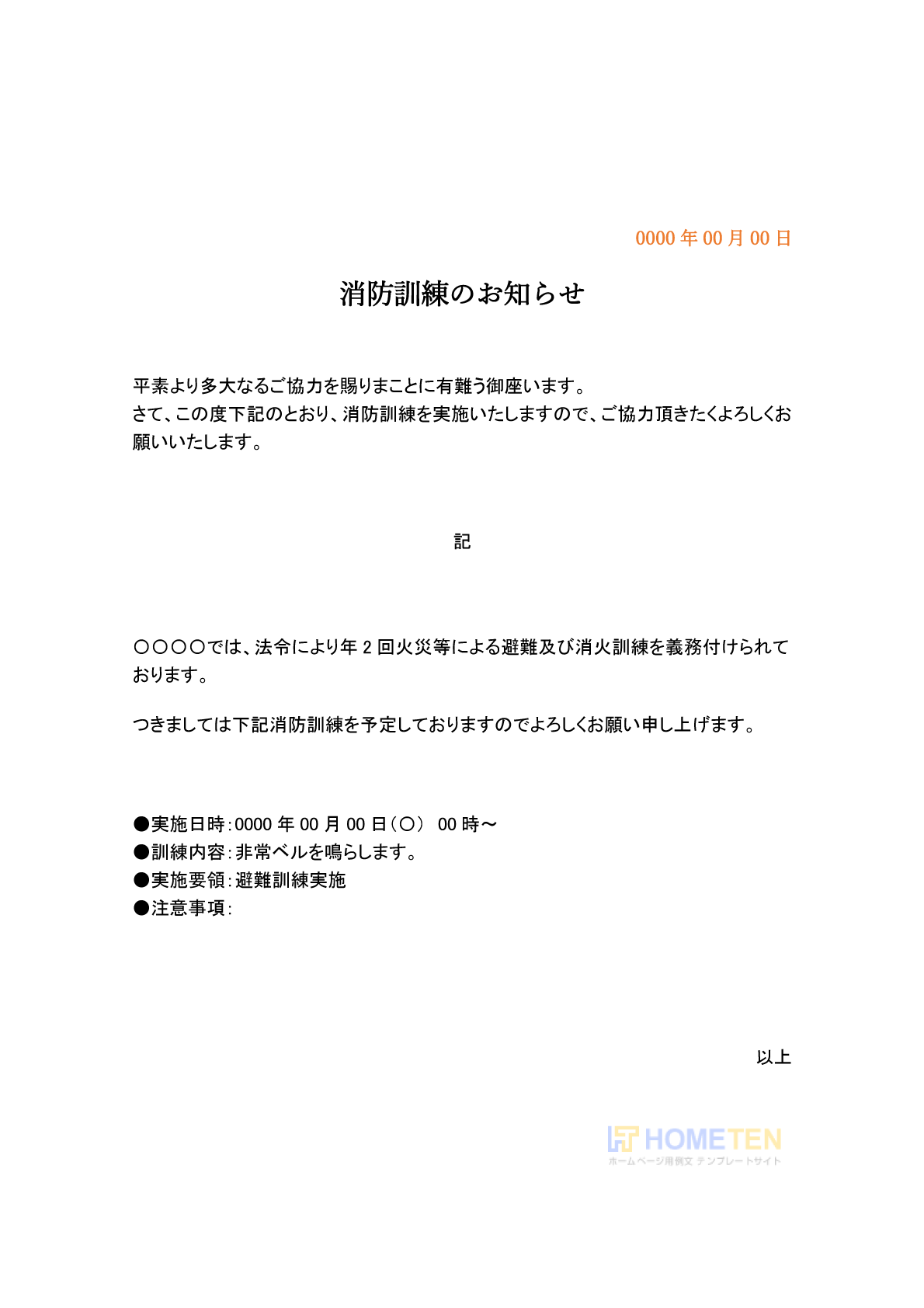 ● 例文3 おしらせ・お詫び 消防訓練のお知らせ