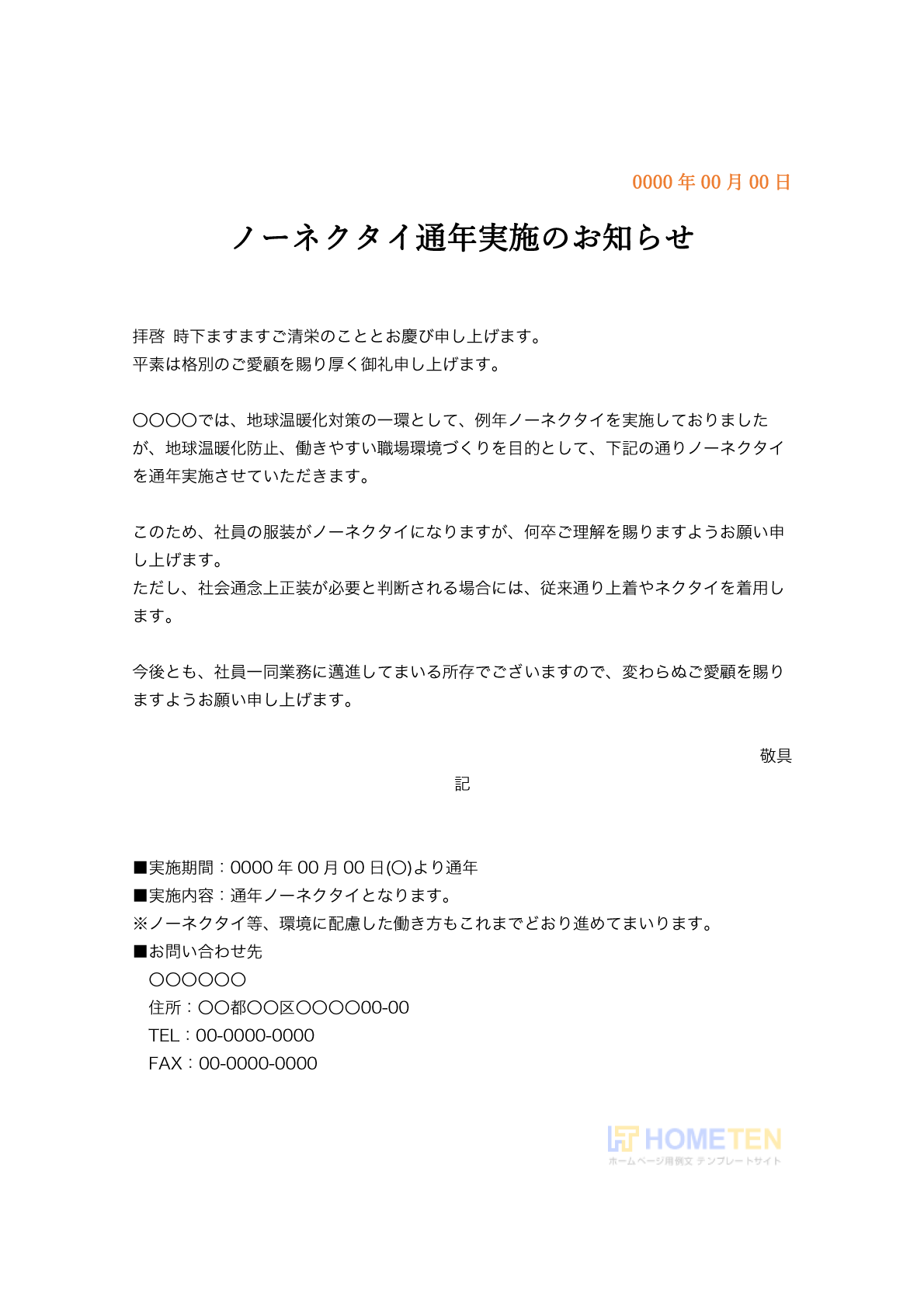 ● ノーネクタイ通年実施のお知らせ 例文使用方法