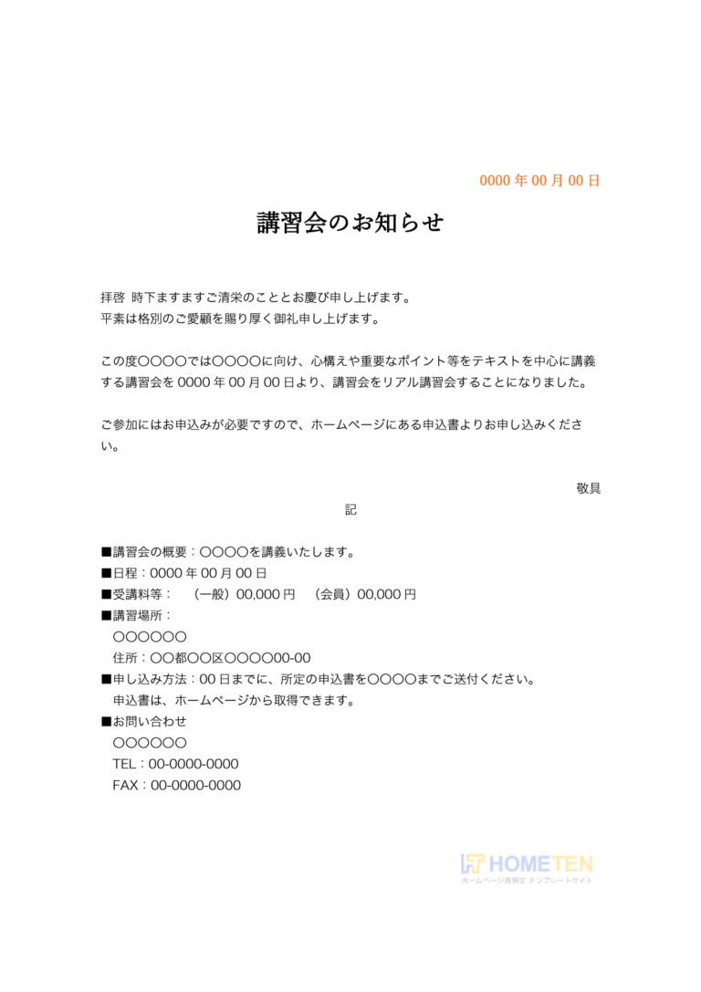 講習会のお知らせを改変しやすい、ひな型として使用できる例文です。