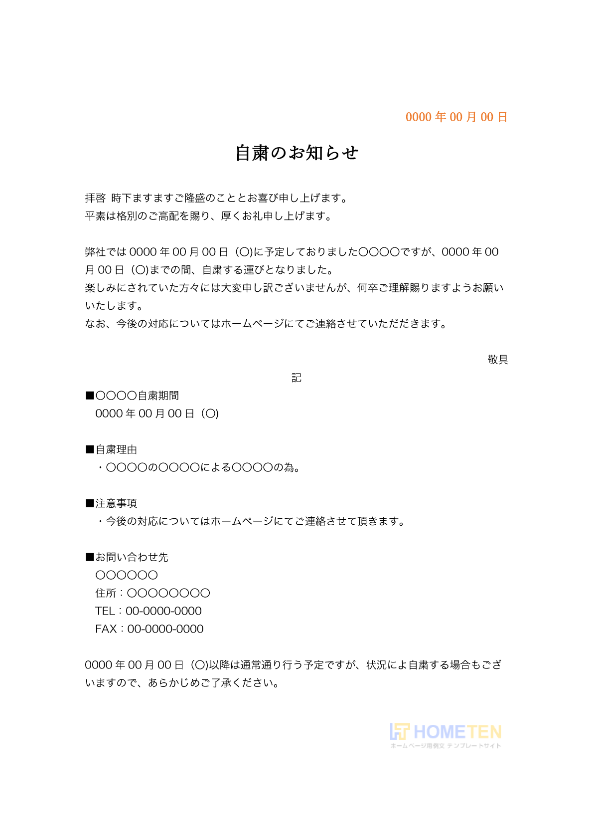 短文版では、自粛のお知らせを急いで掲載する時に使用する例文です。