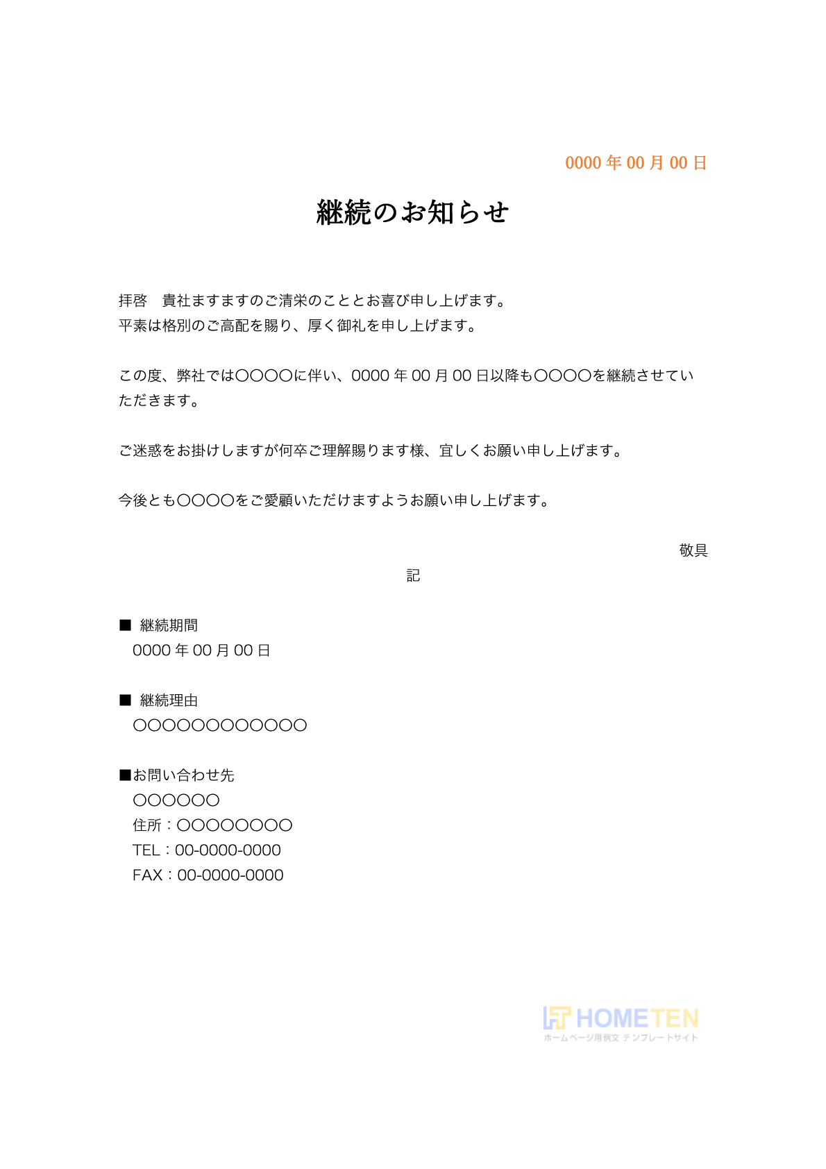 継続のお知らせ 例文