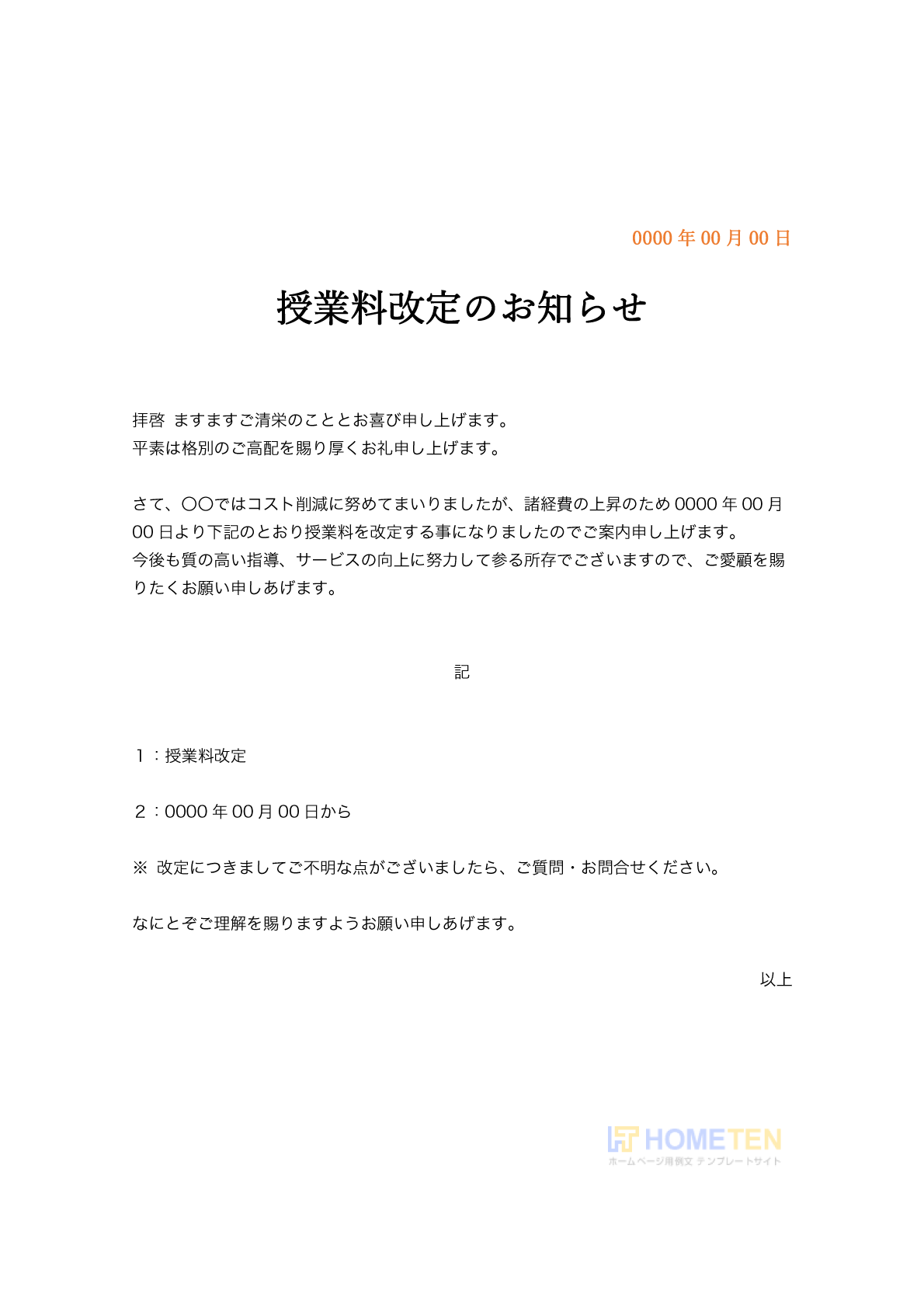 授業料改定のお知らせ例文でした。