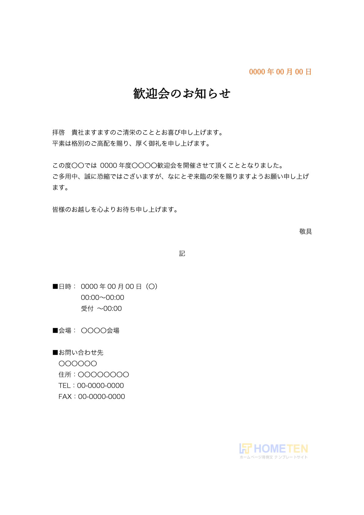 ■歓迎会 日時: 0000年00月00日(〇) 00:00より