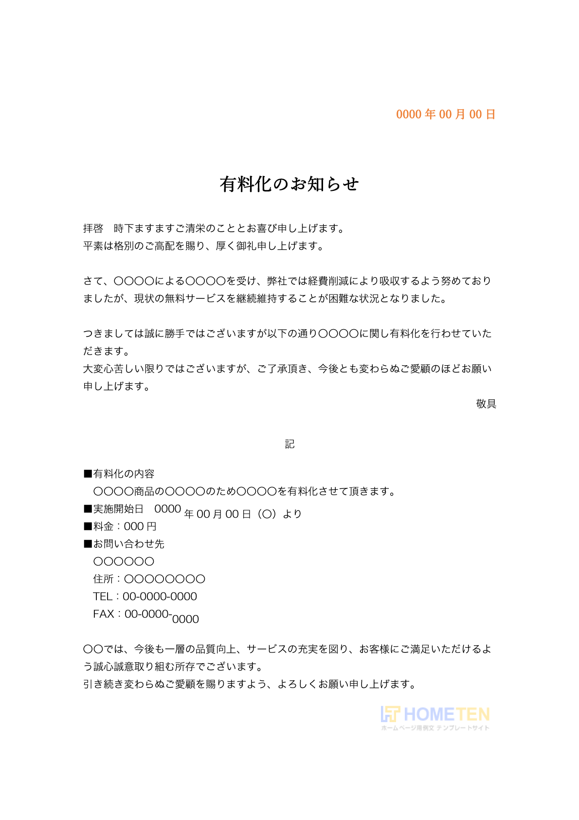 有料化のお知らせ例文でした。