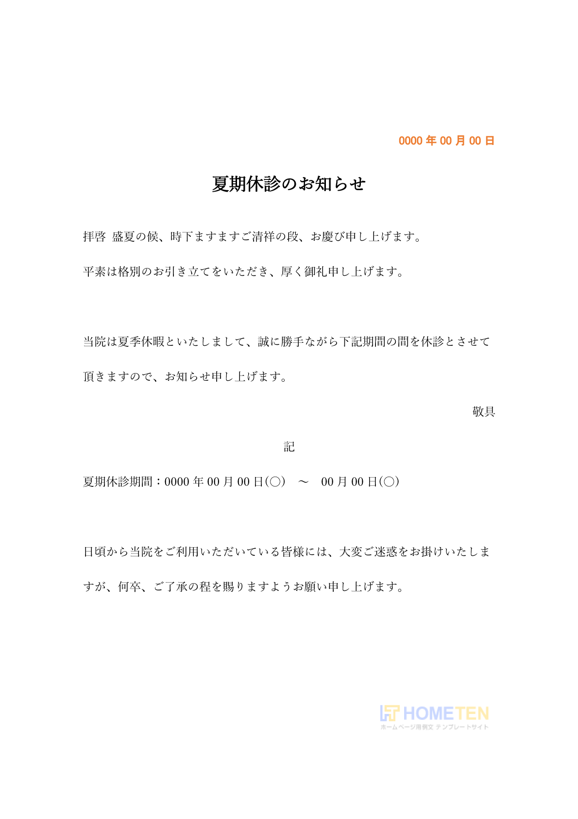 ● 例文2(ひな型版)夏期休診のお知らせ